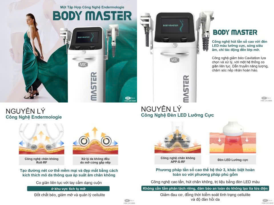“Ngày nay việc tìm kiếm giải pháp cho vấn đề giảm béo và duy trì vóc dáng lý tưởng đã trở nên dễ dàng hơn bao giờ hết. Trong số những công nghệ tiên tiến được áp dụng, máy giảm béo Body Master Hàn Quốc đã nhanh chóng chiếm lĩnh vị trí quan trọng, mang lại hiệu quả rõ rệt và sự hài lòng cho hàng triệu người trên khắp thế giới. Để khám phá chi tiết hơn về những thông số, ưu điểm và cách thức hoạt động của dòng máy giảm béo này mời bạn cùng MTC Skin khám phá ngay bài viết dưới đây.”